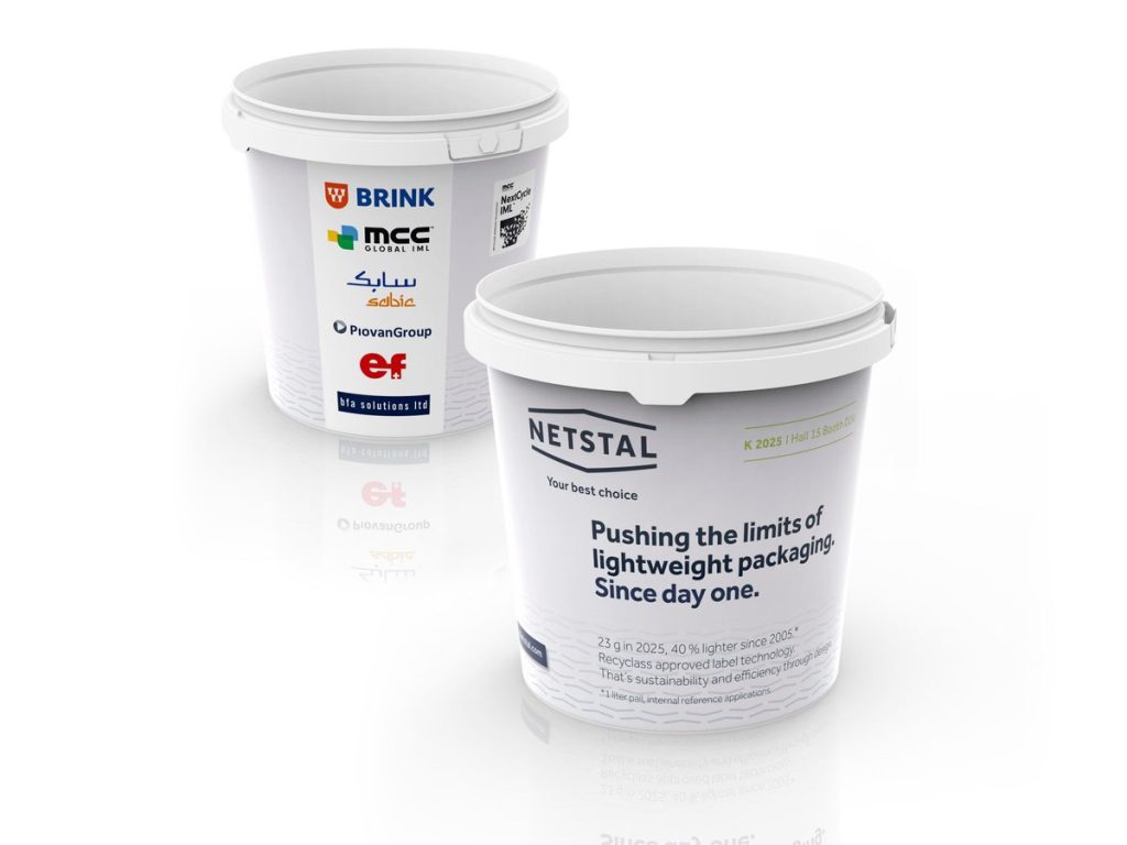 شرکت Nestal بر مزایای فناوری IML از جمله بهرهوری مواد، کاهش انتشار CO2 و قابلیت بازیافت تأکید دارد. در نمایشگاه K Show، این شرکت با همکاری Sabic یک سطل IML یکلیتری از جنس پلیپروپیلن تولید کرده که گفته میشود تنها ۲۳ گرم وزن دارد – طبق گفته Nestal، بیست سال پیش هر سطل نیاز به ۱۵ گرم مواد اضافی داشت.