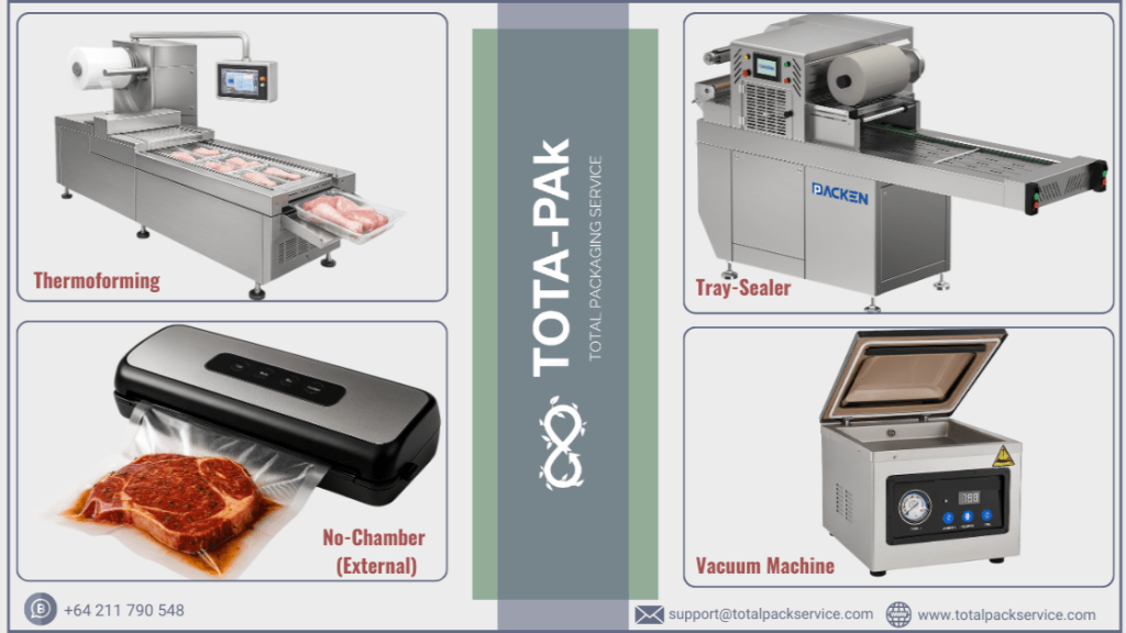 ماشين الات بسته بندی وكيوم در انواع مختلفی عرضه می شوند كه هر كدام برای پاسخگويی به نيازهای خاص محصولات غذايی، حجم توليد و شكل بسته بندی طراحی شده اند.