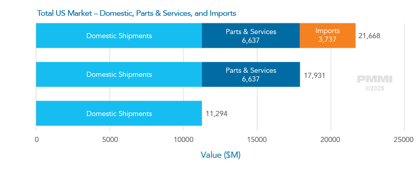داشبورد State of the Industry مکمل این گزارش است و امکان دسترسی تعاملی به مجموعه داده کامل با جزئیات بسیار بیشتر را فراهم می کند. این داشبورد که در اختیار اعضای PMMI قرار دارد، امکانات زیر را ارایه می دهد: در سال 2024، فروش ماشین الات بسته بندی در ایالات متحده به 11.3 میلیارد دلار رسید.
