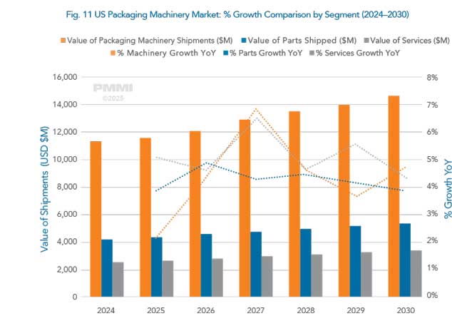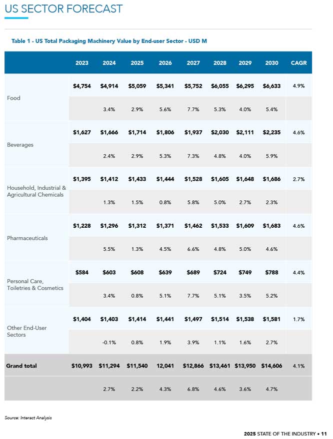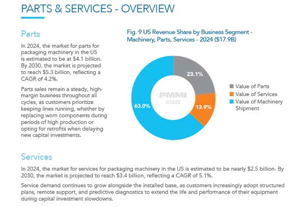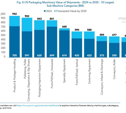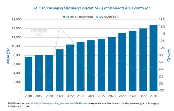هنر بسته بندی / بین الملل: این گزارش یک نمای کلی سطح بالا از بازار ماشین الات بسته بندی ایالات متحده ارایه می دهد. هدف آن کمک به اعضای PMMI، تولیدکنندگان تجهیزات اصلی OEM و ذینفعان صنعت است تا عملکرد کلی بازار، روندهای کلیدی و چشم انداز پیش بینی شده بر اساس صنایع مصرف کننده و دسته های اصلی ماشین الات را درک کنند.