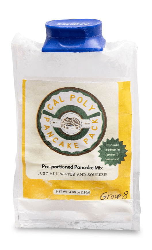 این طرح بستهبندی مبتکرانهای برای ترکیب از قبل اندازهگیریشدهٔ پنکیک است.